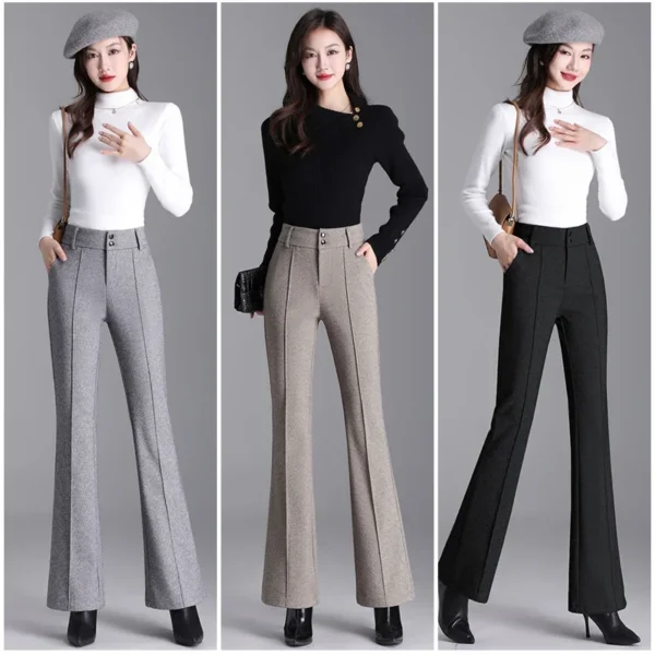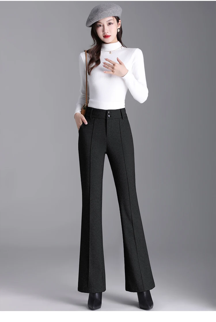 2024 outono nova cintura alta emagrecimento drapeado profissional micro-pull terno reto calças sino-bottom coreano