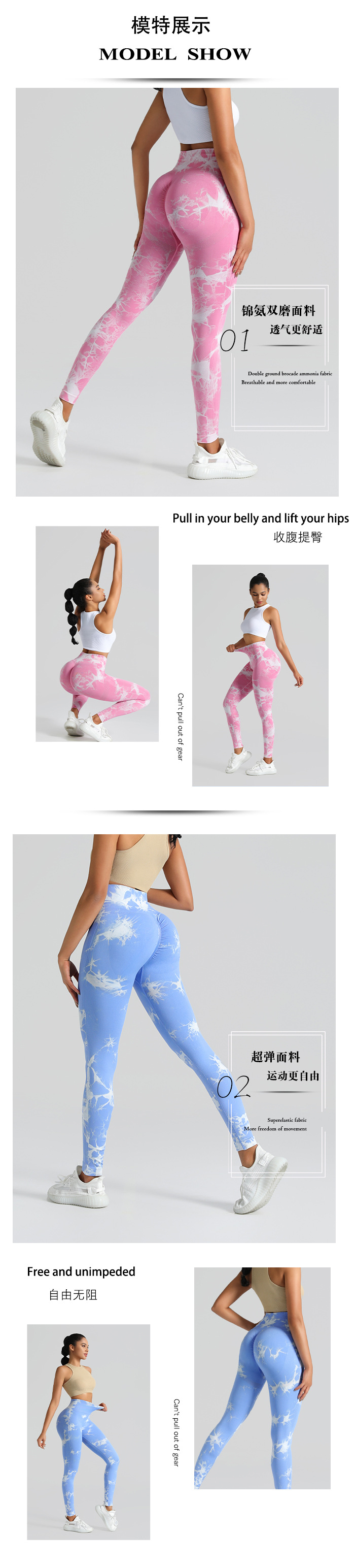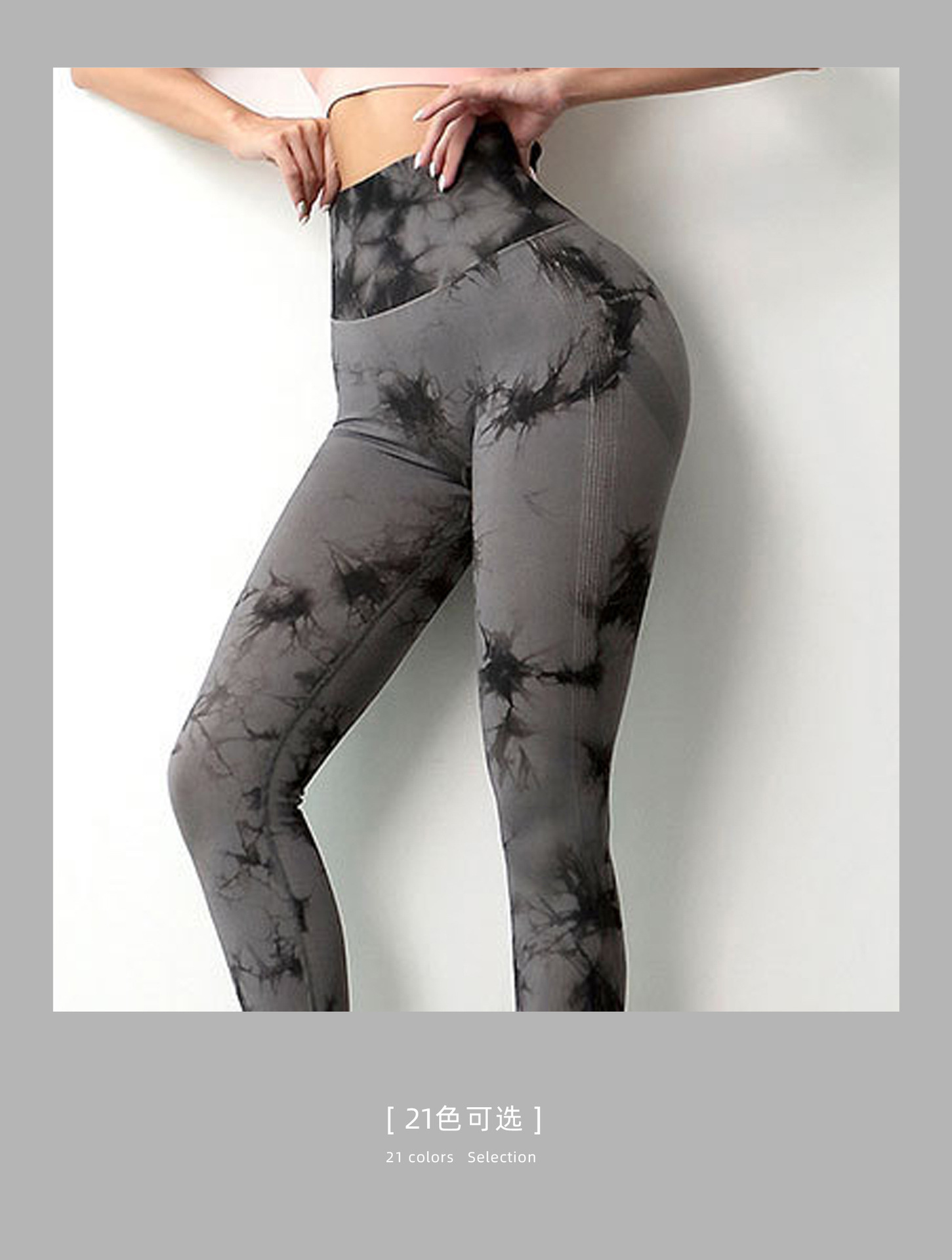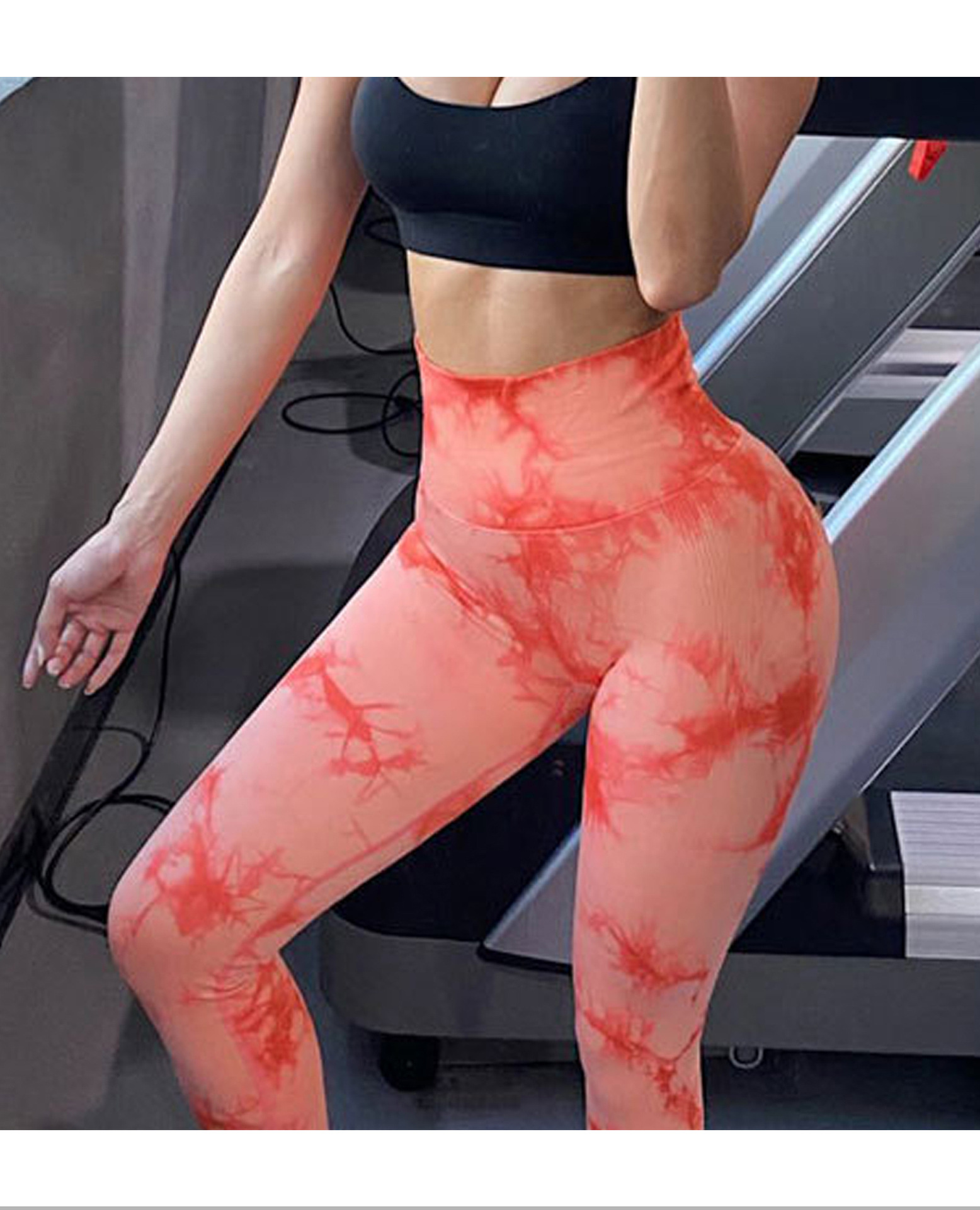 Calças de ioga de quadril pêssego sem costura para mulheres, tingimento de gravata e deriva, cintura alta e calças justas de fitness para levantamento de quadril