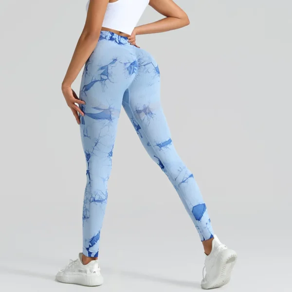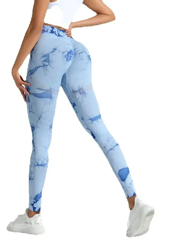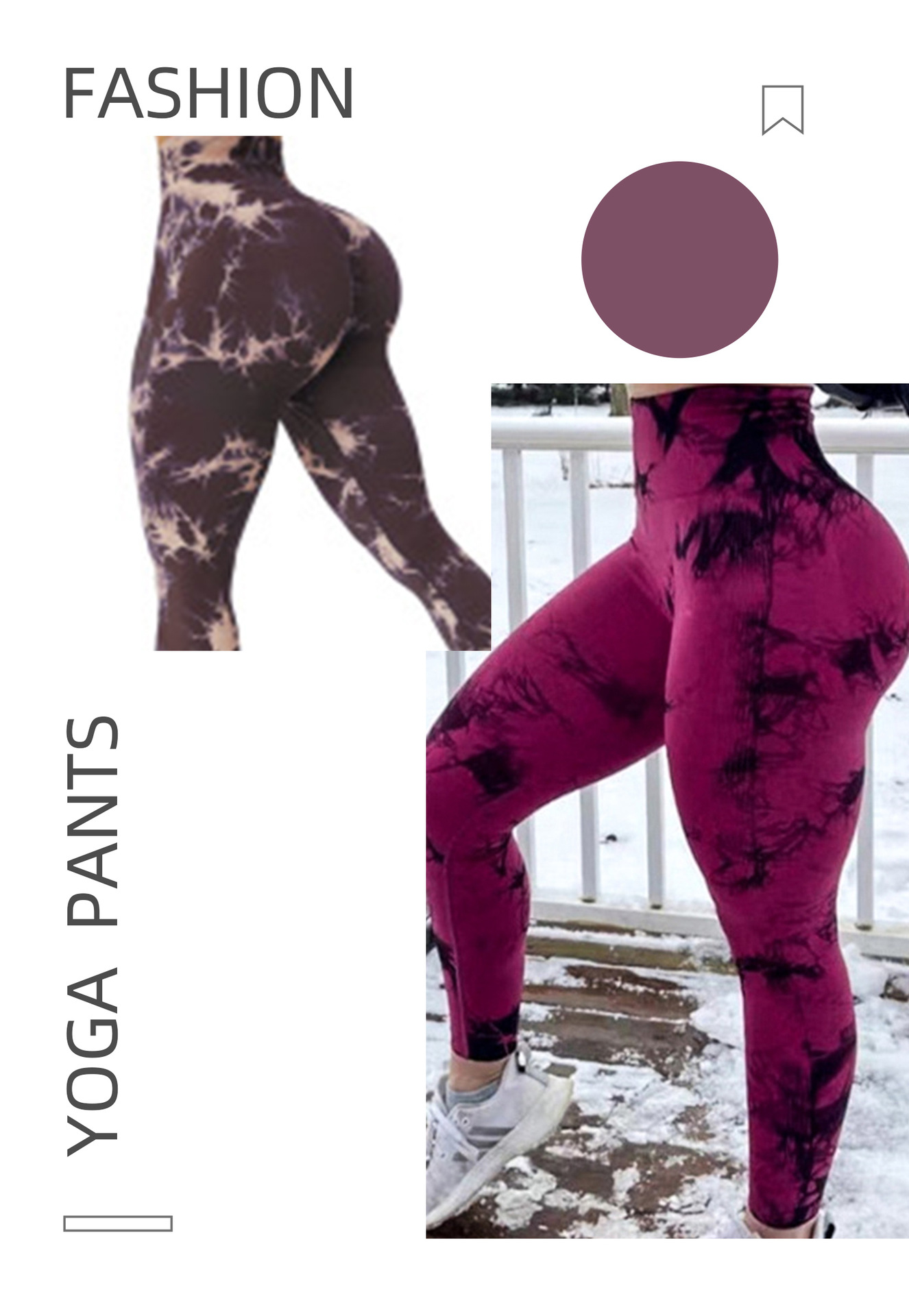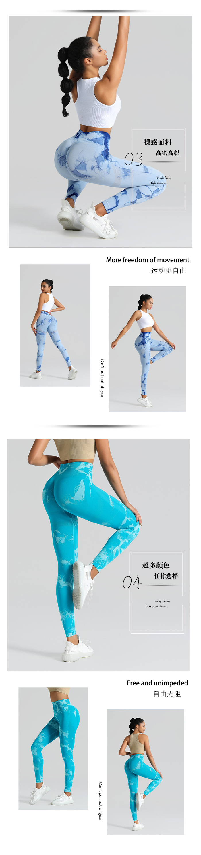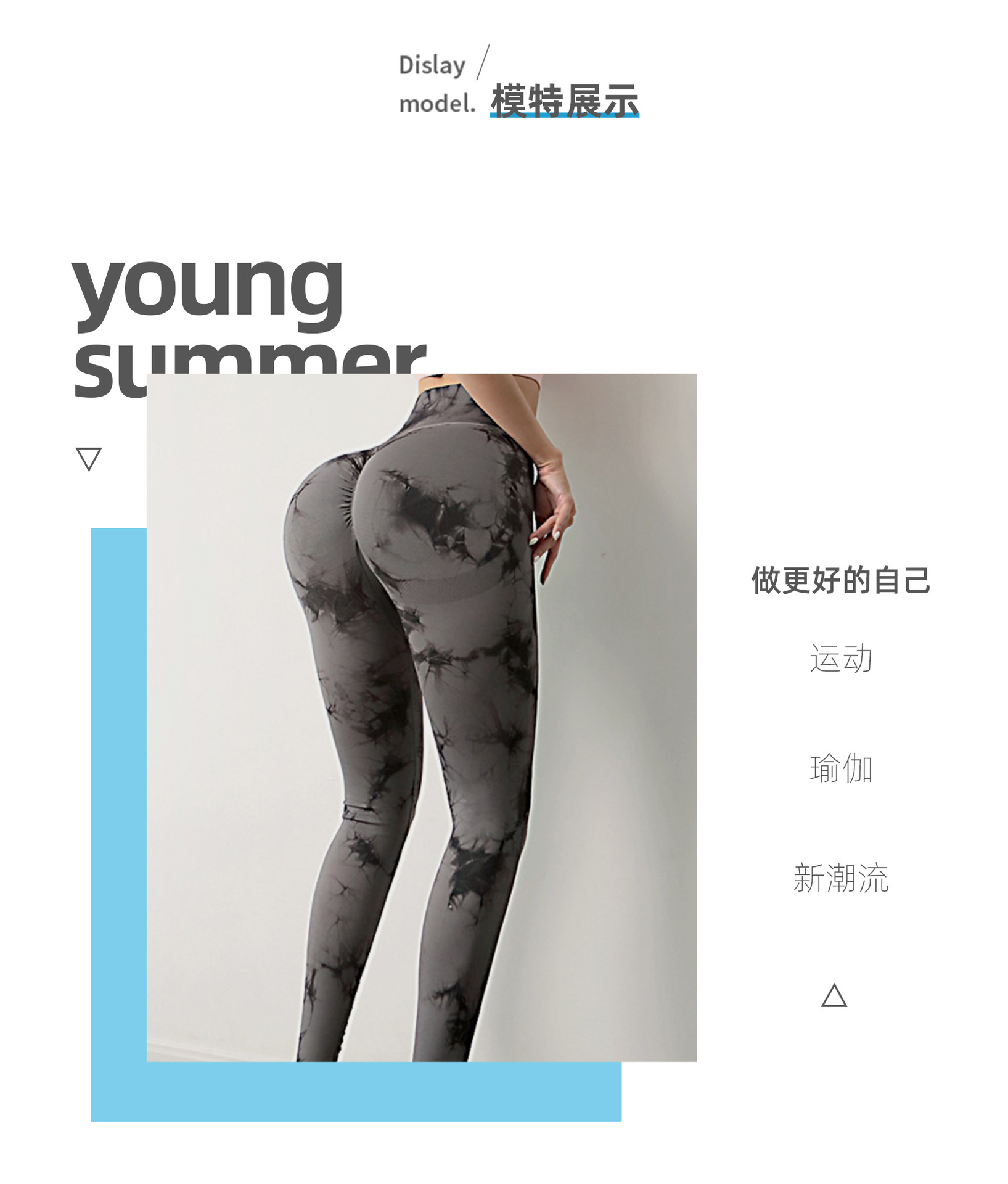 Calças de ioga de quadril pêssego sem costura para mulheres, tingimento de gravata e deriva, cintura alta e calças justas de fitness para levantamento de quadril
