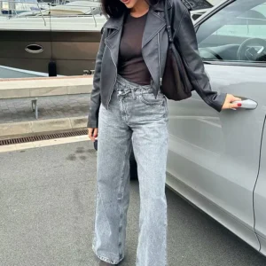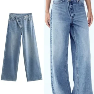 Trafza mulheres 2025 moda jeans retos vintage sólido casual cintura alta perna larga calças jeans high street senhora calças jeans