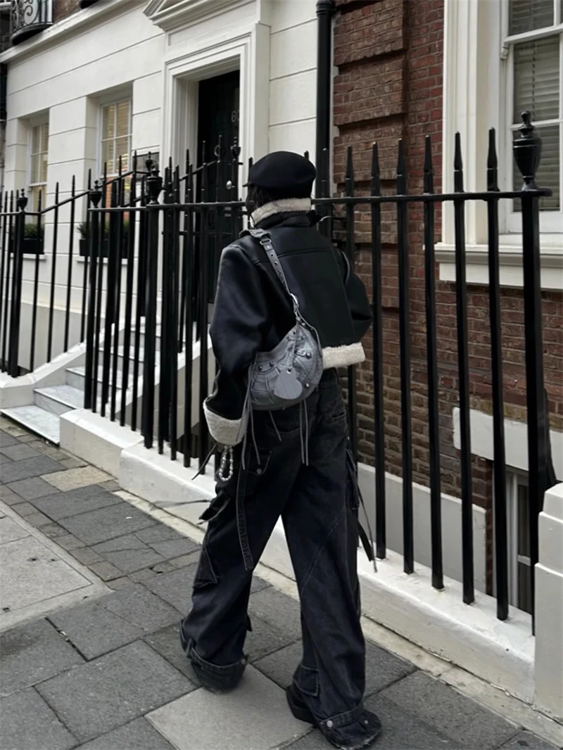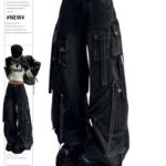 Mulheres preto gótico baggy carga jeans harajuku calças jeans oversize y2k 90s vintage 2000s emo jean calças roupas de lixo 2024
