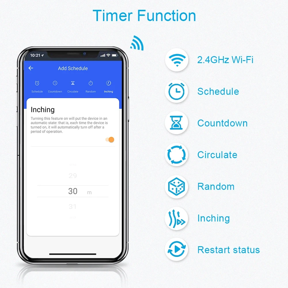 – Inching Timer: Set inching time for your boiler on App, when time is up, the boiler can be off automatically , for example, if you set 30 minutes, so after 30 minutes working time since you touch on the glass panel or mobile App, the boiler will be off by itself.