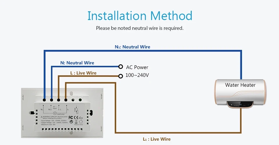 – Please be noted that the neutral wire is required for this water heater switch.