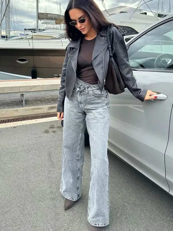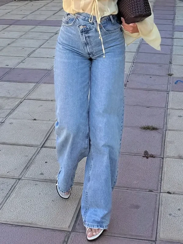 Trafza mulheres 2025 moda jeans retos vintage sólido casual cintura alta perna larga calças jeans high street senhora calças jeans
